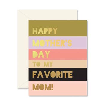 A petite note that is as cute as can be! Mom - Gold foil printed on blush paper. We print all greeting cards at our in-house print shop on traditional letterpress machinery. Folded card with blank interior and foil-stamped sleeve. Please note this card cannot be sent through USPS, it is best hand-delivered or attached to a gift. Designed and Printed in the USA.