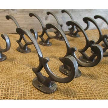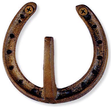 A-93242: METAL HORSESHOE 3-HOOK WALL HOOK 2 ASSORTED 14"W, 8"H. This horse shoe decor is not just for good luck, but also for style and function and it will look great when displayed in your living room of your farmhouse style inspired home. In your entryway, hallway, kitchen or bedroom, add some storage with some style with this wall hook. Great for hanging coats, purses, bookbags, and scarves, this wall hook is as functional as it is stylish. This item comes shipped in one carton. Features three stylized horseshoe wall hooks per set. This horse shoe wall hook comes with holes for easy mounting. Suitable for indoor use only. Each hook holds 5 to 8 lbs. Farmhouse-themed style. DISCLAIMER/PLEASE NOTE: +This item is part of an assorted set — each piece is priced individually, with a minimum order of 2.