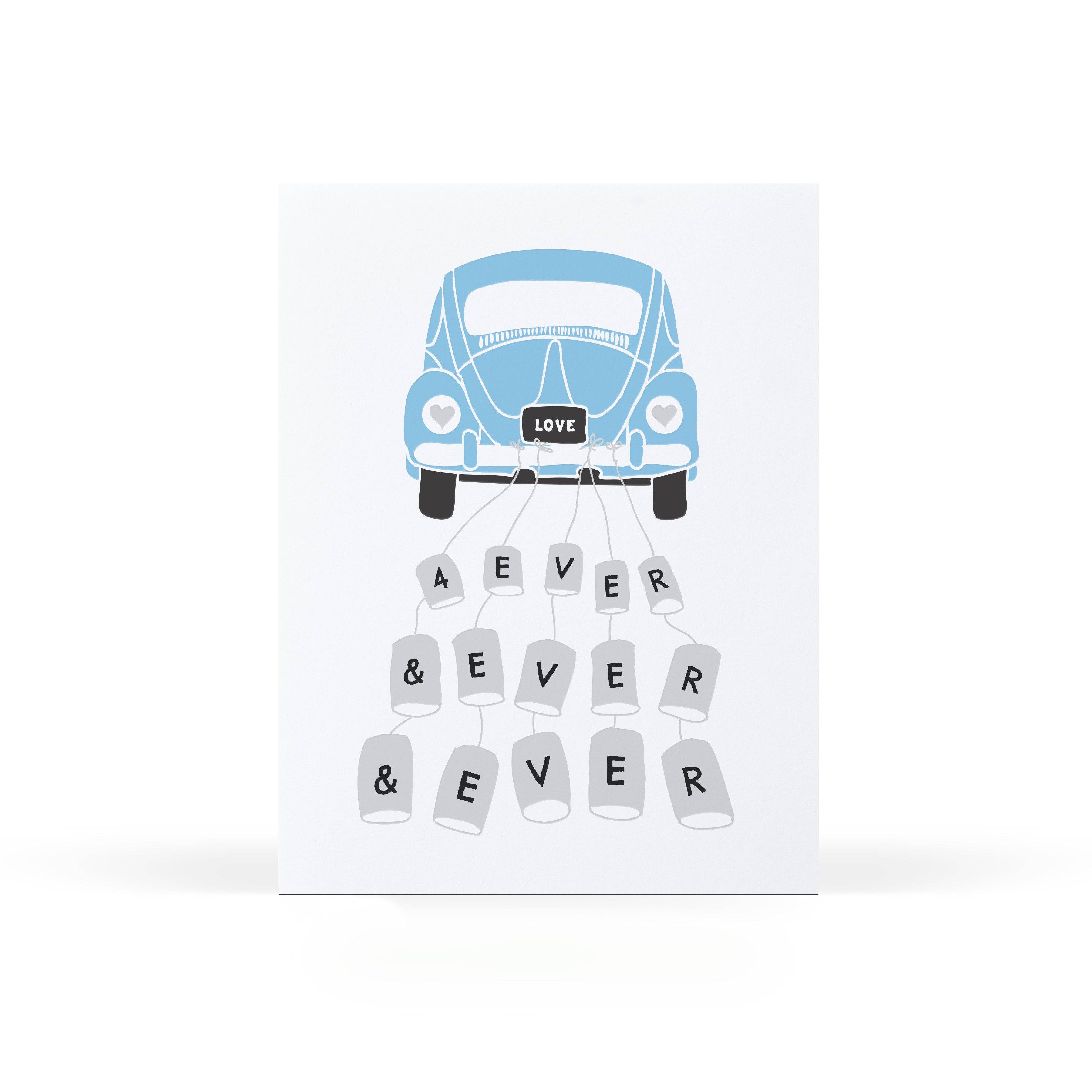 A cat-forward wedding card for well-wishing featuring a decadent cake and two kitty cake toppers. Risograph printed in violet and seafoam. * A2 folded card, blank inside * Contrast envelope * Eco-friendly, vegetable-based ink * Printed on 100% recycled, FSC-certified fiber-fleck cardstock