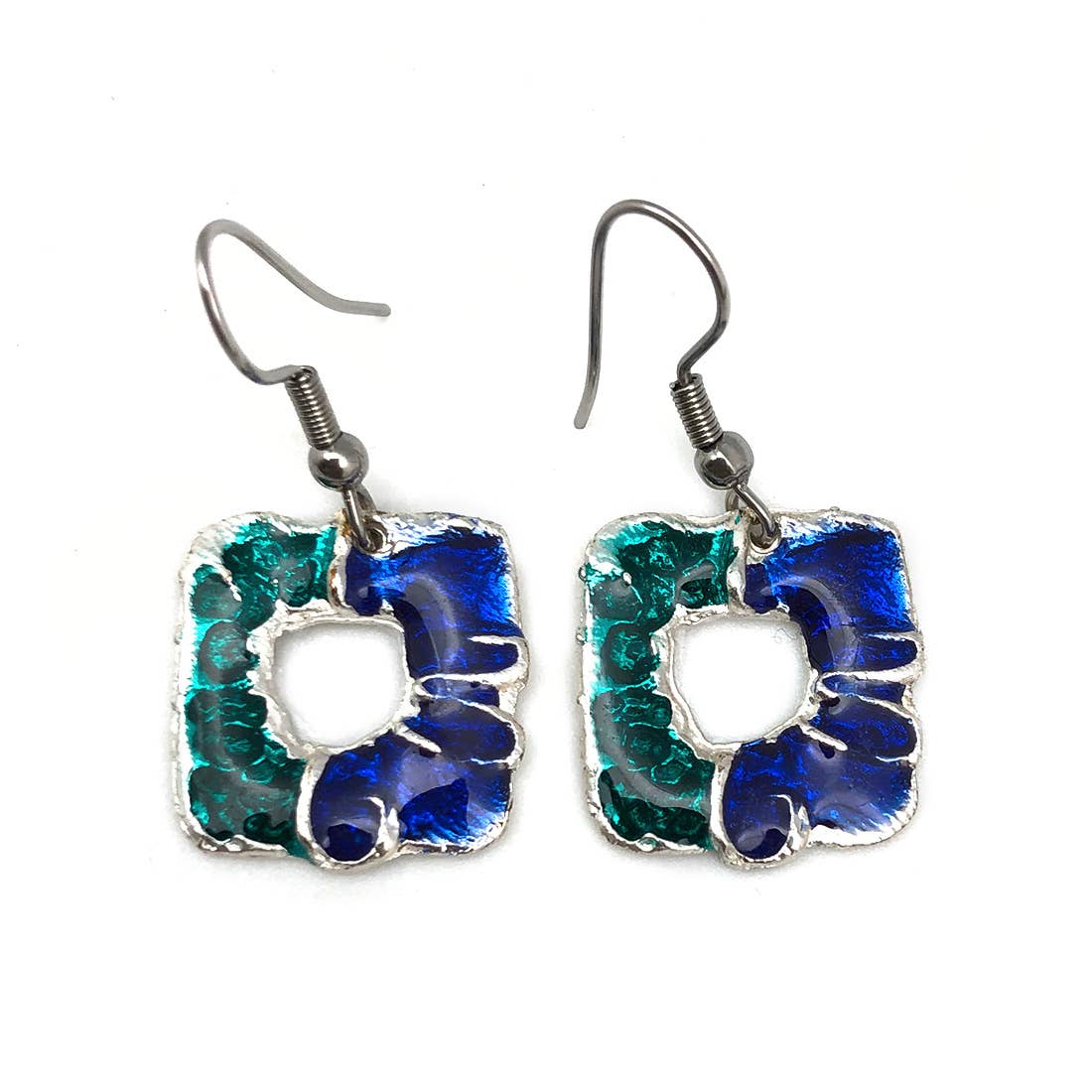 Long Stained Glass Dangle Earrings handcrafted in assorted Royal Jewel Tones. The Royal Jewel Tone set includes 4 varied color dangle earrings which can include solids, iridescent, swirls, transparent, textured. The more your order, the bigger your variety of colors. *Colors: shades of red, blue, green, black, amber, purple. *No 2 sets alike. 20+ colors available without duplication. *In the long dangles, the glass part is appx 1.25" to 1.5”, 30-35mm. *No retail display packaging included other than our business cards *Surgical Steel French Wire * Artisan Handcrafted, Handmade in USA, Crafted in Small Batches * Woman Owned *Art glass is fabulous, but quirky. The glass sheets can have bubbles, pocks, roller marks, sometimes dips in the texture where swirl colors meet. Also, the kilns do not heat evenly and our glass flows as a liquid. These are handcrafted, not machine crafted. Expect a few (minimal) quirks.