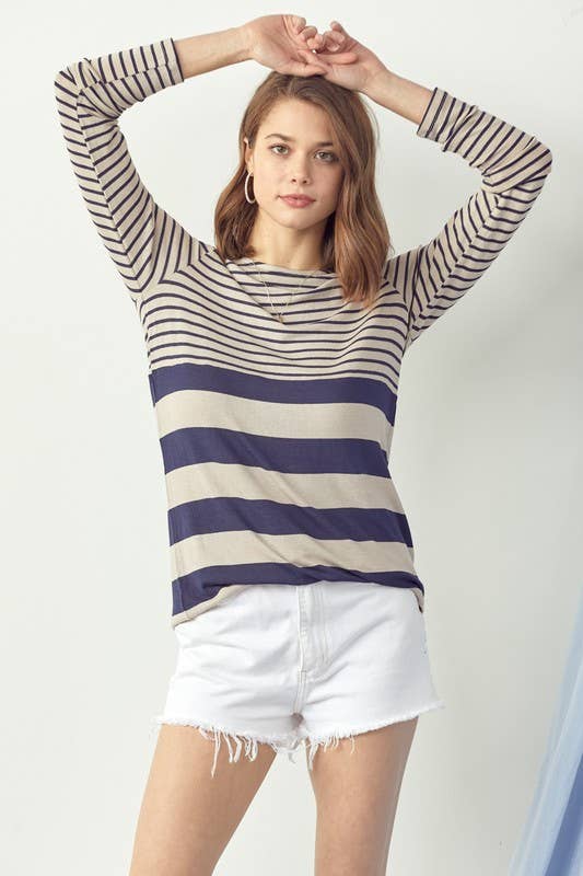 JCS3562-Lightweight Puff Short Sleeve Stripe Knit Top