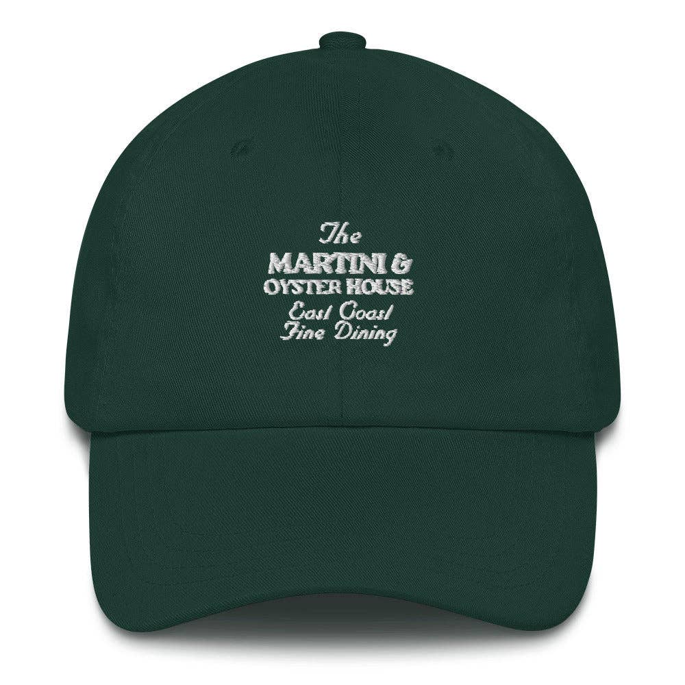 Accept this invitation to the Dirty Martini Club. A members-only society who all share a communal love for the savory. This dad hat is adorned with the club's vintage logo and our trademarked saying, extra dirty, extra olives. • 100% Chino Cotton Twill • Unstructured, 6-Panel, low-profile • Embroidered • 3 ⅛” (7.6 cm) Crown • Adjustable Strap with Buckle This product is made to order, which is why it takes us a bit longer to deliver it to you. Making products on demand instead of in bulk helps reduce overproduction, so thank you for making thoughtful purchasing decisions.