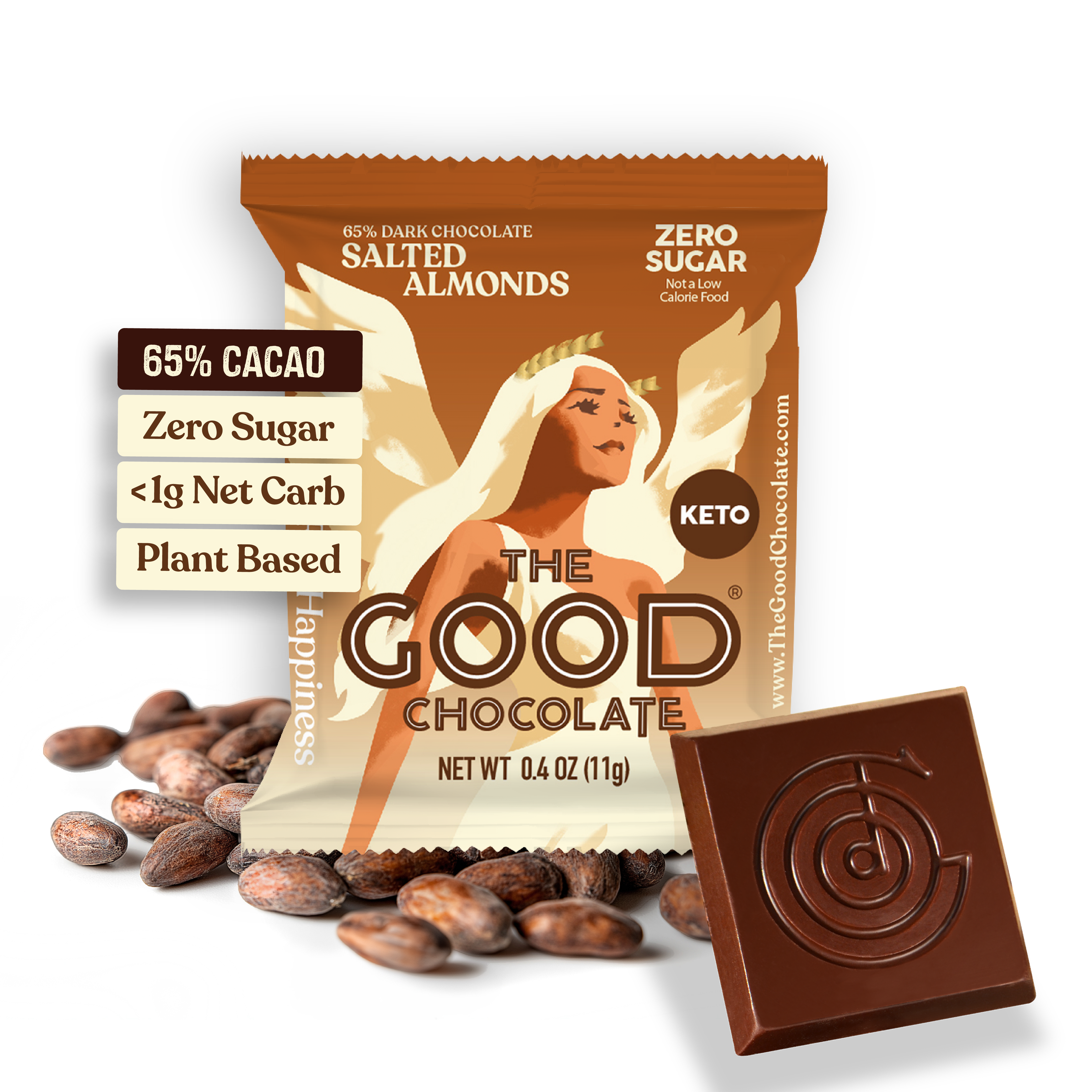 Himalayan & Sea Salt Chocolate Square / 0.4 oz (11 g) - HIMALAYAN & SEA SALT CHOCOLATE 65% CACAO is the perfect balance of pink Himalayan salt and Sea salt flakes with dark chocolate 65% cacao - PERFECTLY BALANCED SWEET AND SALTY chocolate indulgence - LOWER NET CARB than 65% chocolate with sugar (Net Carb = Total Carb - Fiber - Erythritol) - KETO-FRIENDLY AND PERFECT FOR OTHER LOW CARB DIETS including Keto, FODMAP, Vegan, Soy-free, and Low glycemic index - CERTIFIED FODMAP FRIENDLY - VEGAN with PLANT BASED SWEETENERS from fruits and plants - Erythritol and Stevia. Zero Sugar (not a low calorie food) - MADE FROM BEAN-TO-BAR from select blend of organic cacao beans and processed cocoa butter - INDIVIDUALLY WRAPPED POUCH for portion control and snacking on-the-go Himalayan & Sea Salt Chocolate Square contains 1 x 0.4oz (11g) chocolate square