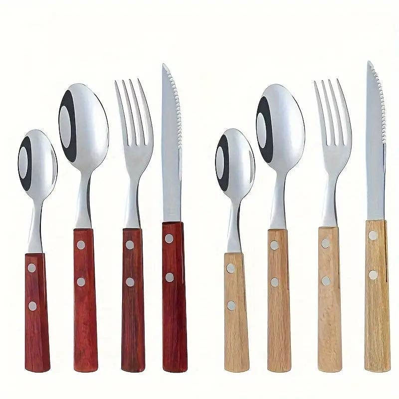 40PC Silverware Set – Faux Wood Handles, 8 Sets – Durable & Dishwasher Safe
