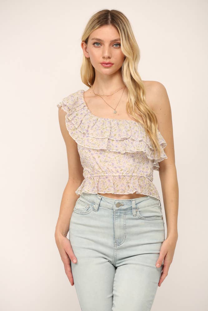 Designed in V-neck sleeveless cropped fit top in lace with drawstring and ruffled detailing. Specs/Dimensions: - Please call or message our team for more info.