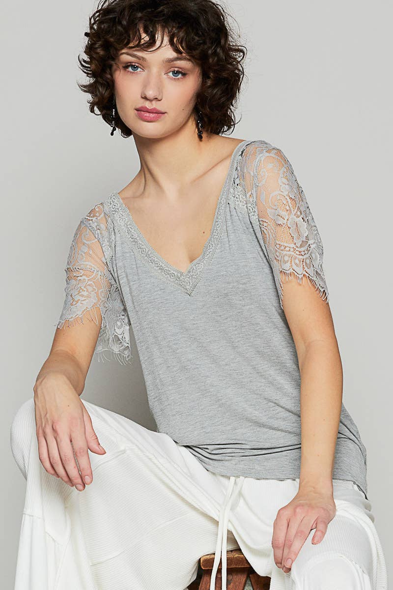 1/2 lace sleeve v-neck tee SALE