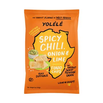 36 units to a case. Tiny Grain. BIG Flavor. Classic sour cream and onion flavors just got a West African upgrade. Citrusy baobab and earthy moringa leaf come together for a zesty and bright flavor explosion. Move over, potatoes and corn. We make our chips with Fonio, a climate-smart, nutrient-dense ancient grain that’s helping transform communities. Savor them on their own, stuff them in a sandwich, dip ’em in guacamole, salsa, hummus, and more, or use them in your next batch of nachos! Get creative with our delicious West African inspired nacho + dip recipes.