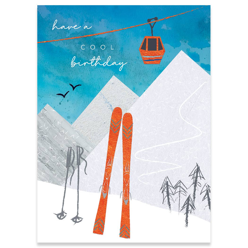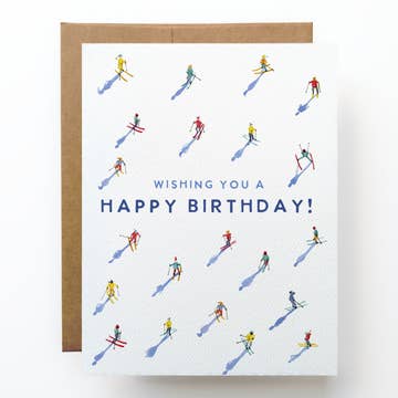 Alpins skier girl, with red jacket, Skier Birthday, Inside: Ski to live -- live to ski Happy Birthday! Size A6 (4 5/8 x 6 1/4”)