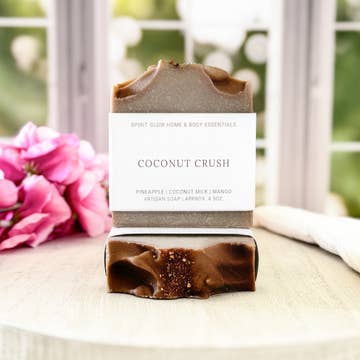 This rich and creamy coconut bar of soap is the perfect way to clean up in tropical style. With a delicious coconut scent, it's like holding a vacation in the palm of your hand. Made with a trifecta of organic creamed coconut, organic coconut oil, and organic coconut extract you might think you should eat it and not wash with it. But definitely don't eat it, it tastes terrible, because it's soap. Really great smelling, moisturizing soap...but still soap. 114g / 4oz Not tested on animals. RSPO Palm Oil. Vegan Natural Saponified Oils Coconut, Safflower, and responsibly sourced Palm oils for natural bubbles and gentle cleansing. Organic Coconut Oil Naturally anti-bacterial and highly moisturizing to protect and nourish...plus it smells like a vacation :) Herbal Extract Blend A potent blend of soothing, calming, antioxidant extracts to nourish your skin all day long. Coconut Extract Naturally soothing and intoxicating scent Made In Canada shipped from Kelowna BC