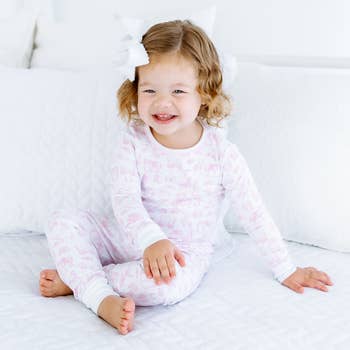 SoftSnooze™ Toddler Girls Bamboo Viscose Bows and Bouquets Ruffle Long Sleeve Pajama Set with Signature Rear Ruffles