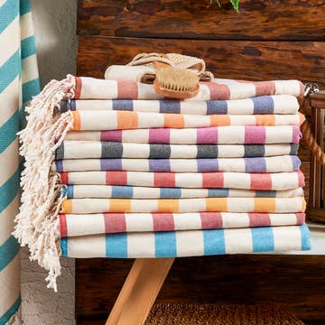 This lightweight multicolor Turkish towel uses a variety of colored threads to produce a mesmerizing, stunning display of intertwined hues. Rainbow Turkish Towel/ Peshtemal is one of our top sellers! 100% Premium Turkish Cotton Sand-resistant – Just shake the towel once, and you're ready to go! Super Fast Dry ( Air Dry - Couple of minutes) Lightweight & Portable Super Versatile - Can be used as beach towel, picnic blanket, yoga towel, sarong and beach wrap Jacquard Woven Outstanding Quality Sophisticated Design Excellent Detailed Weaving Super Soft Silk Feeling Gentle on Skin Machine Washable: Cold wash is recommended SIZE & DIMENSIONS Size: 38x 68 inches Weight : 12 Ounces