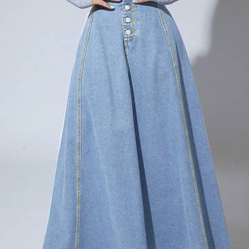 Wholesale Patchwork Denim Maxi Skirt