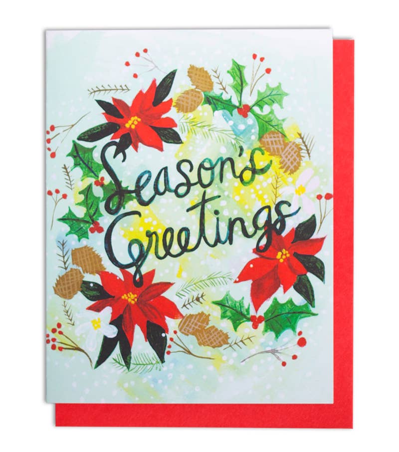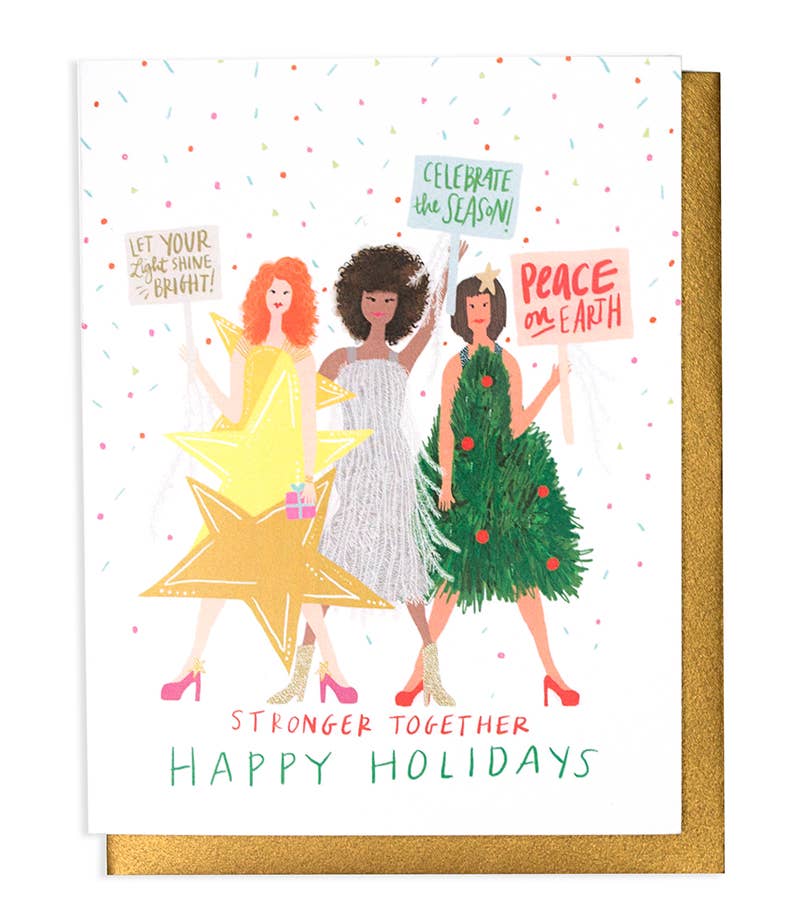 Our holiday hoopla card features a hand-painted illustration. This product was created in collaboration with The Glitter Guide. To learn more visit www.theglitterguide.com.This product was created in collaboration with The Glitter Guide.