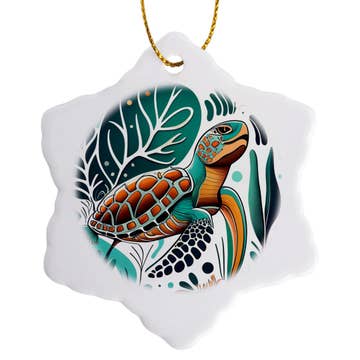 Swim into coastal charm with this sea turtle–shaped resin ornament! Flowing ocean-blue and sandy resin waves swirl around the turtle’s graceful form, capturing the gentle spirit of these beloved marine creatures. A playful, beachy keepsake perfect for ocean lovers, coastal decor fans, or anyone dreaming of sun, surf, and sandy shores. Every piece is laser-cut from quality birch wood and handcrafted in small batches. Layers of VOC-free epoxy resin are mixed with premium mica pigments to create mesmerizing ocean wave patterns — no two ornaments are ever alike, just like the tides themselves. Finished with baker’s twine and natural wooden beads, these lightweight ornaments make a stunning addition to Christmas trees, gift packaging, or year-round coastal displays. . Product Highlights: • Handmade in small batches • Lightweight — approximately 1 oz • Size: 4–4.5 inches • Laser cut from 1/8" birch wood • Handcrafted with VOC-free epoxy resin and mica pigments • Each piece has a one-of-a-kind wave pattern • Finished with baker’s twine and two wooden beads • Back is sealed wood with clear gloss finish (no resin on back) • Eco-friendly packaging — plastic-free and recyclable Care Instructions: Avoid excessive heat and water to maintain the finish and resin clarity.
