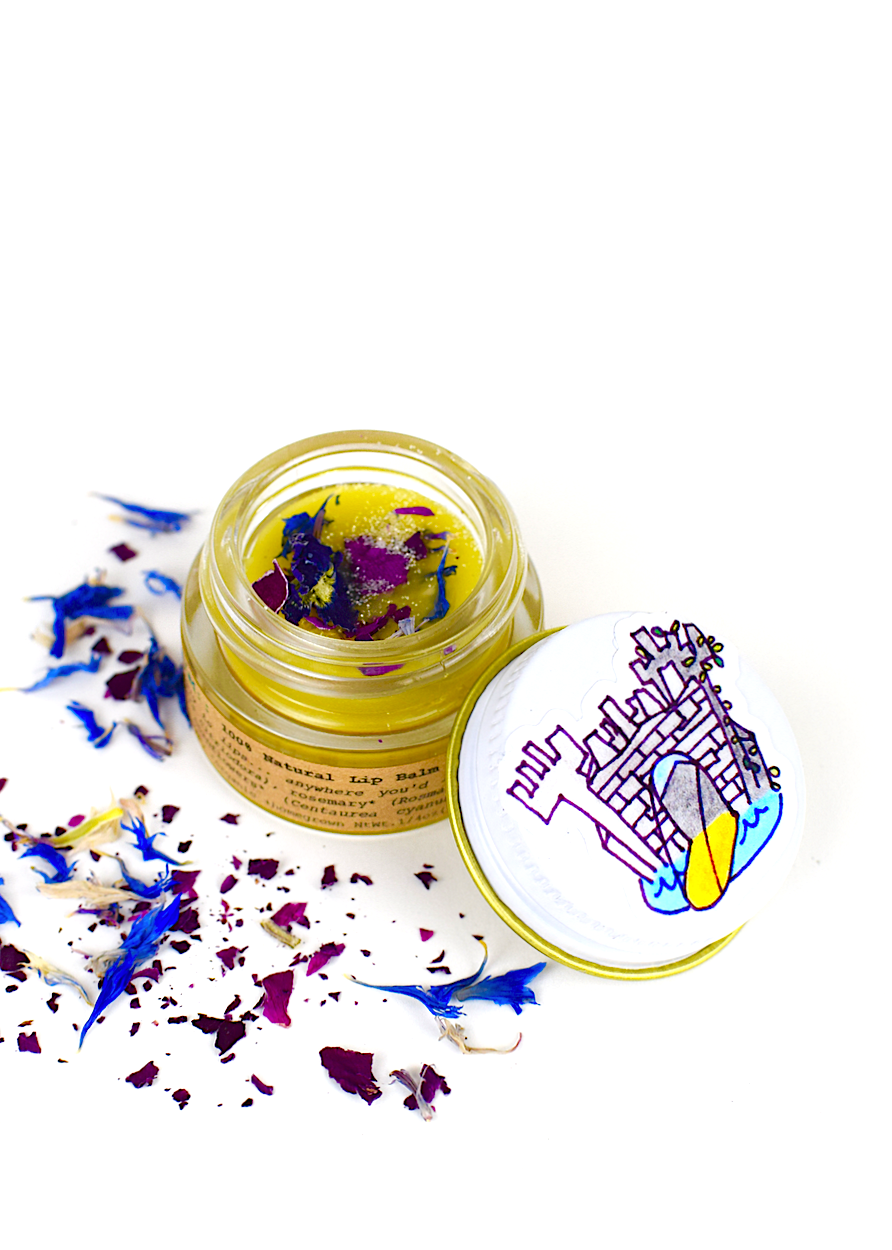 In Search of Rainbows... A dream inspired coconut based balm with bits of local lilac blossoms, beach roses and pure mica glitter. Perfect as a sheer glossy splash to the lips or cheek bones. Excellent for general moisturizing purposes. Directions: Apply with fingers to freshly cleansed skin. This creation has a cocoa taste, flavor and essence from the cocoa butter. There will also be some texture from the flower and mica bits. Will melt in high temperatures, but solidify back in cooler temps. This creation does contain a bee product (thank you bee's)! Ingredients: fair trade virgin unrefined coconut oil*, fair trade cocoa butter*, beeswax*, alkanet root powder*, my own naturally garden grown lilac blossoms, my own garden grown beach roses, natural mica flakes (Muscovite mica with trace phlogopite mica) + love. *purveyed certified organic Size: 1/4oz (7ml) reusable glass jar with a metal lid. ♡plantmakeup