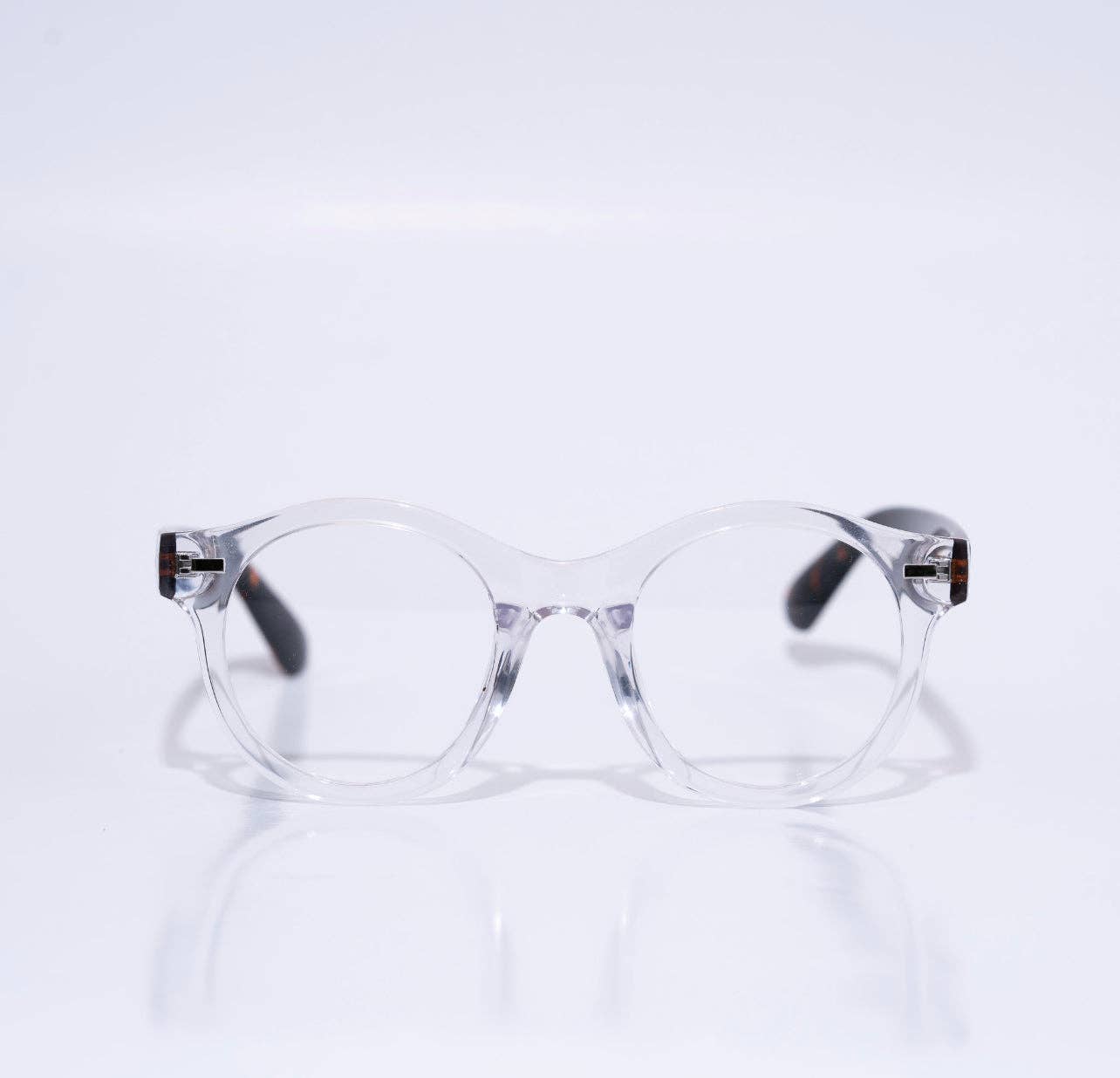 A bold intellectual design offering timeless style. Blue Light Blocking:reduces eye fatigue, filtering out blue light from all the screen time our eyes receive each day Premium Polycarbonate: technology that provides a sturdier frame Sizing: Lens width: Bridge: Temple: Available in 3 Colors Transparent Blue | Peach Transparent Emerald Green | Champagne Transparent Fuschia Pink | Ivory KEIKO | R-9056-C3-BLB Transparent Pink | Ivory| Blue Light