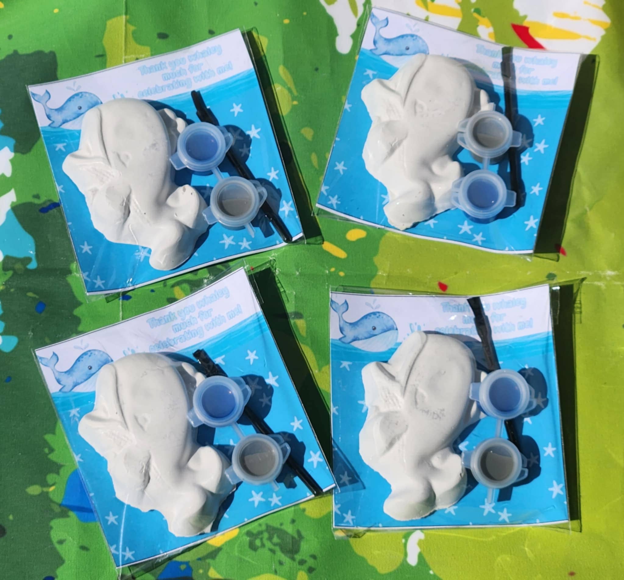 Each kit is thoughtfully packaged and designed to inspire creativity while keeping the island vibes going. 🎨 Each Kit Includes (1 per order): ✅ 2 Tropical-Themed Plaster Piece (approx. 2 inches) – could be a hibiscus, palm leaf, or pineapple! ✅ 1 Mini Paintbrush ✅ 2 Non-Toxic Paint Colors ✅ Themed Hawaiian Card Stock 4x4 package– Custom background options available upon request If you need 10 kits, please purchase a quantity of 10. 📦 Shipping & Policies: 💡 These are fragile items. While we package with care, occasional breakage may occur in transit. We keep stock on hand, but if replacements are needed, please allow 4 days for curing before shipping.