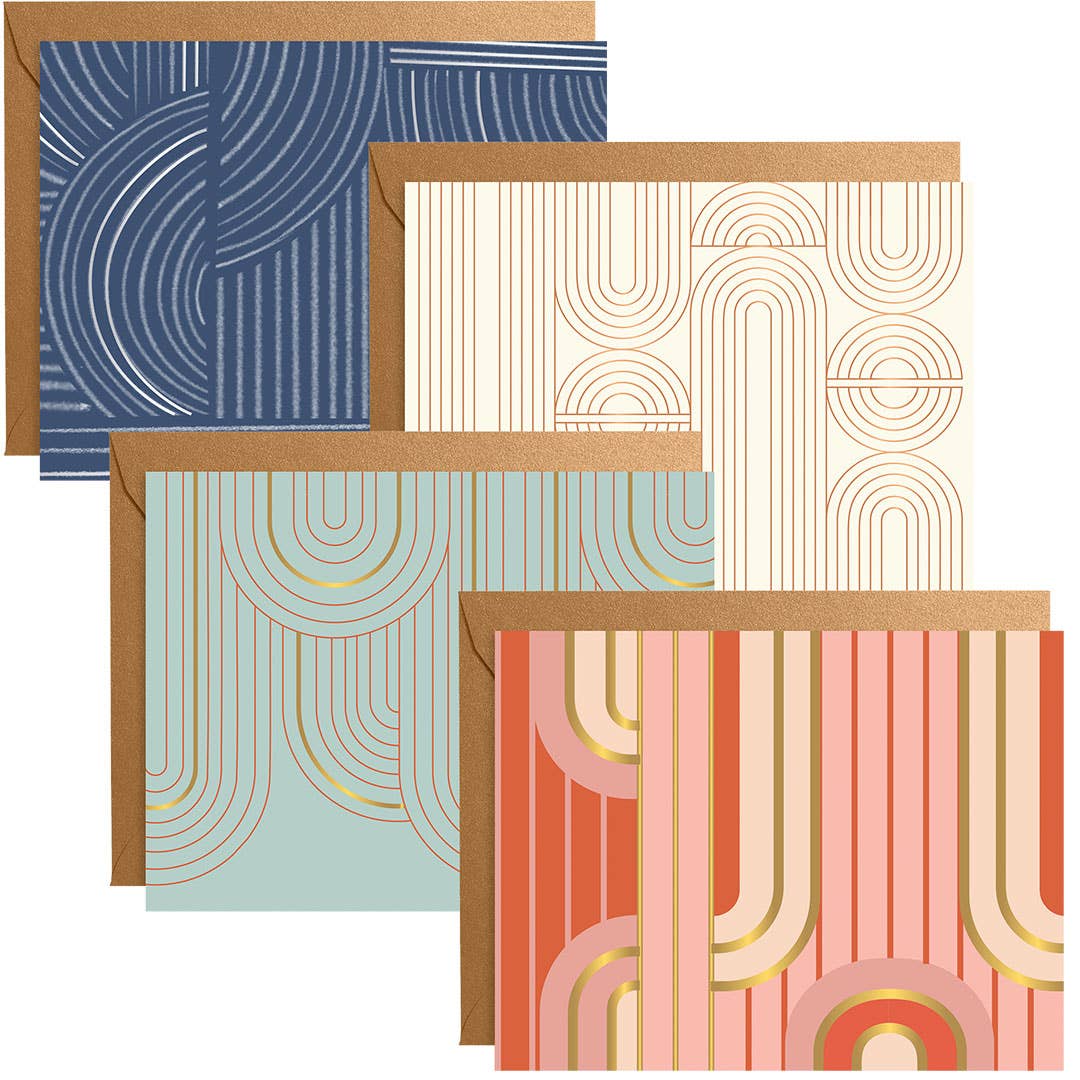Set of six, hand-illustrated greeting cards letterpress printed on plush 100% cotton paper. Made in the USA. includes: 6 cards + 6 envelopes // size: 4.25 x 5.5" folded // packaging: clear plastic box // interior: blank // minimum: 4 per design style