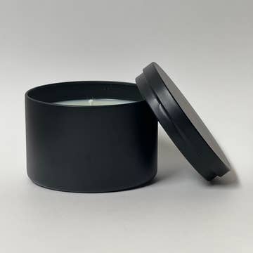 8oz Unlabeled Luxury Black Curved Tin Soy Candle