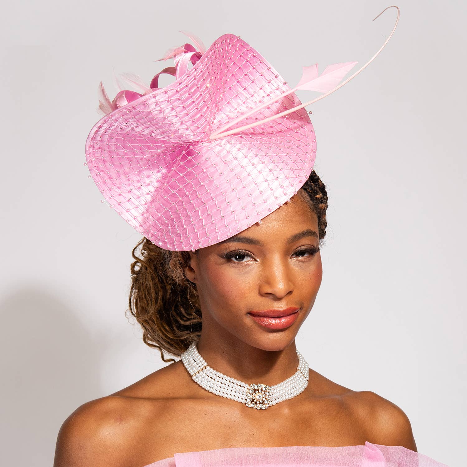 This stylish Braid Pill Box Party Occasion Hat is perfect for special occasions. Featuring a classic design with a braided exterior and a pillbox shape, this hat adds a touch of elegance to any outfit. Made with high-quality materials, it offers both comfort and durability. MESH BOW AND NETTING SATIN BRAID PILL BOX PARTY OCCASION CHURCH HAT