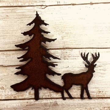 One Tree extra large magnets in assorted colors. These are 10" tall. Made with recycled metals and made the the USA. We source our metals all over the United States. Tags: mountain souvenir, wilderness decorations, sustainable gifts, impulse buy, green gifts, made in the USA, Montana, Wyoming, New Mexico.