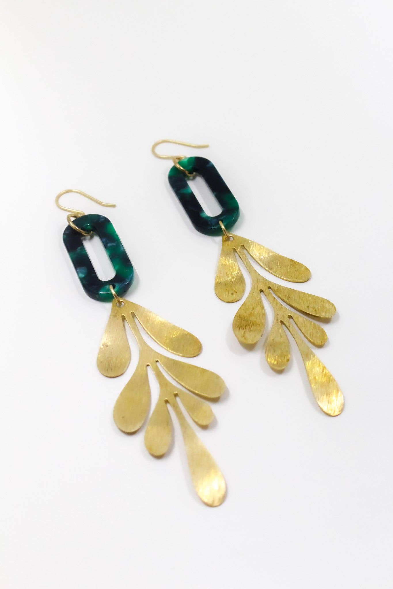 Floral splendor These eye-catching and unique earrings boast of earthy, spring vibes with its fun moss, lavender and sepia colors. Made with a confetti style acetate disc and a mini brass medallion. These earrings are lightweight and measure slightly over 2" long and 1.5" wide. Made with acetate derived from natural sources, these eco earrings are now not only kind to people, they’re kind to the planet too. Hypoallergenic and nickel free. Our in-house jewelry line is designed by founder Haley Jaeger and created by artisans in Haiti through Atelier Calla. Atelier Calla celebrates sustainable jobs, fair trade working environments, preserving Haitian culture, and upcycling materials. They partner with over 30 artisans to create their beautiful pieces!