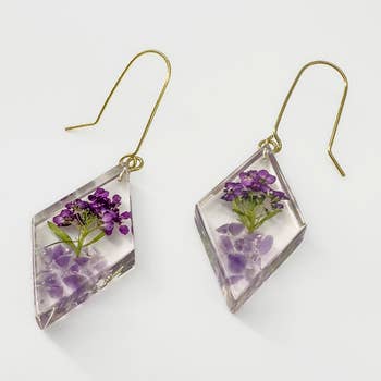 Phlox Real pressed flowers, preserved in crystal clear, glass hard jewelry grade resin, using our proprietary process. We do our best to match earring pairs as closely as humanly possible, but please understand that no two flowers are completely identical, and that is a large part of their charm. If they were identical, chances are they'd be made of plastic! Sterling silver earring wires.