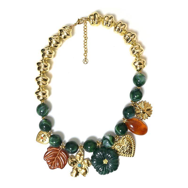 PRODUCT CODE: YNK241504B726 MATERIAL: Plastic, 316L Stainless Steel LENGTH: 44cm + 5.5cm Extension DESCRIPTION: · Ethnic-retro style, featuring colorful faceted plastic beads combined with decorative golden balls, creating a bold and original look, perfect for expressing personality and uniqueness. · Fall-Winter Collection. DESIGNED TO BE COMFORTABLE AND EASY TO WEAR Our products are made in compliance with the limitations on nickel, lead, and cadmium, in full accordance with current regulations.