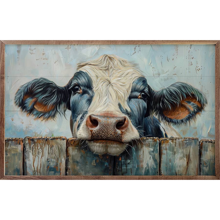 This cute cow with butterflies was an original painting by a TN artist. We scanned the art and printed with high end, fade resistant ink that leaves the printed canvas looking just like the original painting. Canvas prints are wrapped around a lightweight wooden frame so hanging is easy. There is a 1/2" unprinted raised edge. (Logo will not be printed on print. Prints are not sold to large box stores so you can have unique decor for your store ;0) Keywords..... mercantile, farmhouse, rustic, country living, barn animals, shelf sitters, living room decor, nursery decor, animal lover, gift, small batch, summer, nature decor, florist, bookstore, fast shipping, furniture store, home interior, general store, Butterfly, boutique