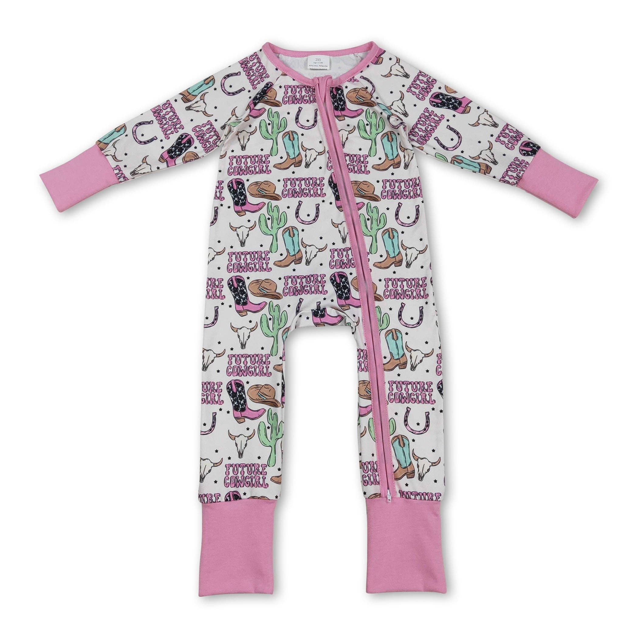 Baby kids long sleeve cow cactus zip fall rompers