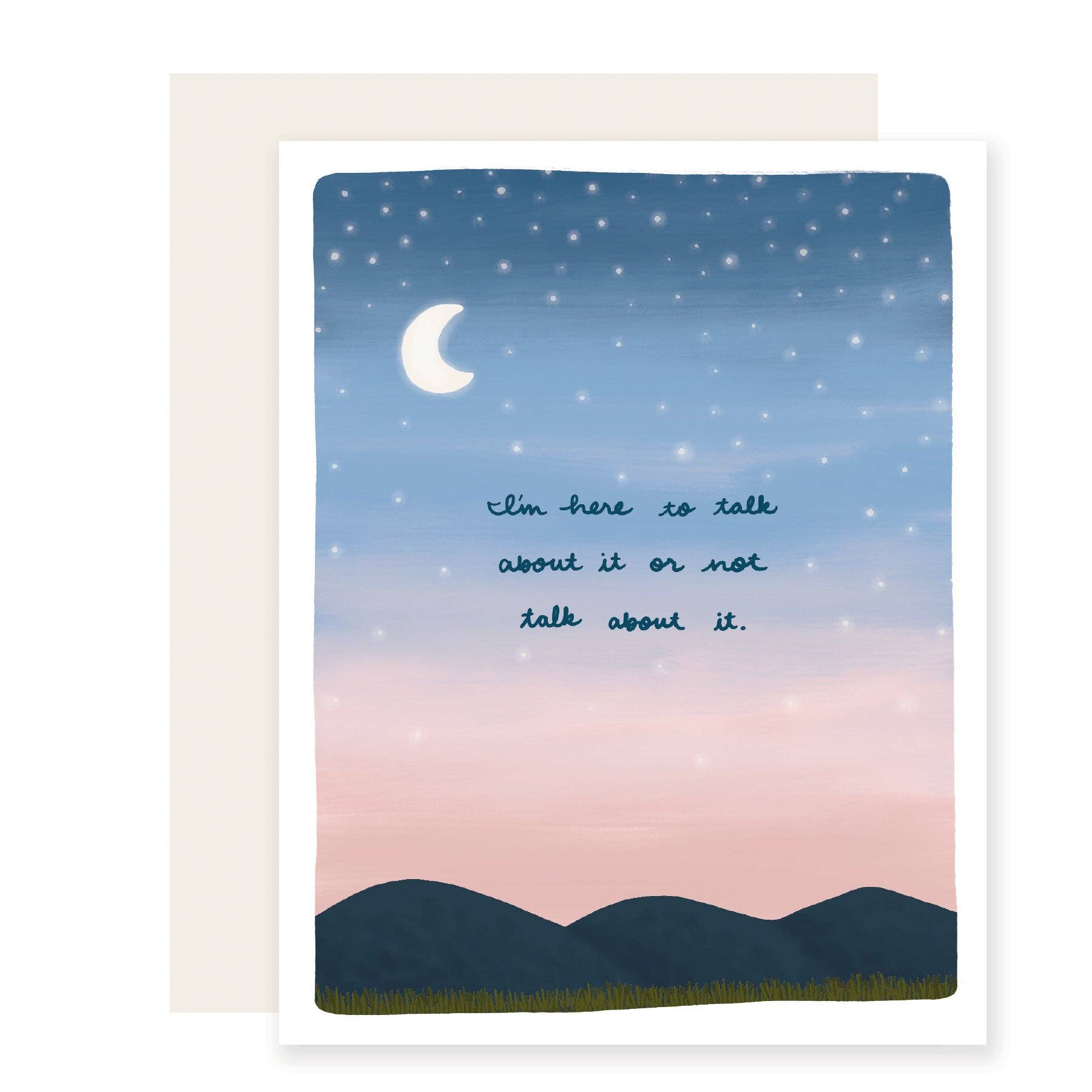 A2 size card & envelope (4.25 x 5.5") Folded card, blank interior Printed full color on cream 110lb cardstock Designed & printed in the USA