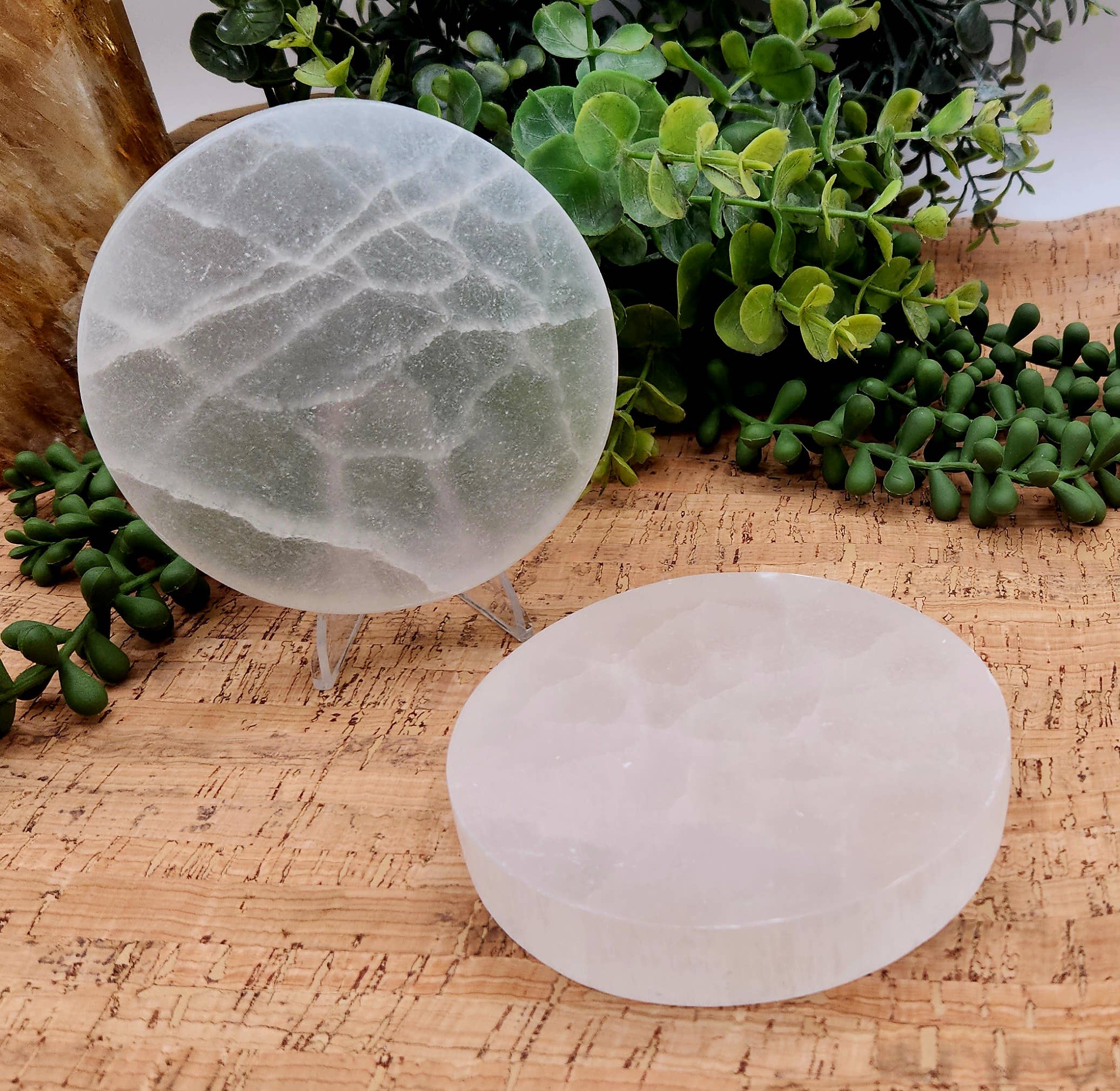 You will receive 1 Selenite Round Plate 7 cm approximately the same size and quality as the ones pictured. Note that patterns, shades, veins, and thickness may vary. (All props shown in the photo are not included, they are only present for display purposes only. You will only receive 1 Selenite Round Plate 7 cm) Pieces measure approximately between (L) 2.88" x (W) 2.88" x (H) 0.50" and (L) 3" x (W) 3" x (H) 0.50".