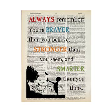 We love to give new life to old books with messages of hope, love and strength. We up-cycle the beautiful, weathered pages to create unique prints that glow with the patina of another age, so no two are alike. The result is a beautiful and interesting home decor print. Definitely a conversation starter! Our prints are created using vintage books rescued from library recycling. The prints you purchase will be of the image you select, the vintage book page it is printed on will be different. We offer unframed prints that are ready for retail. Each print is carefully packaged in a resealable cellophane sleeve with rigid chipboard backing. The back of each packaged print features a "story sticker" that explains how and why we do what we do. We also offer framed prints. Each book page is carefully framed in a sturdy solid wooden black frame that is ready to hang on a wall or sit on a shelf. The back of each frame features our "story sticker" which explains how and why we do what we do