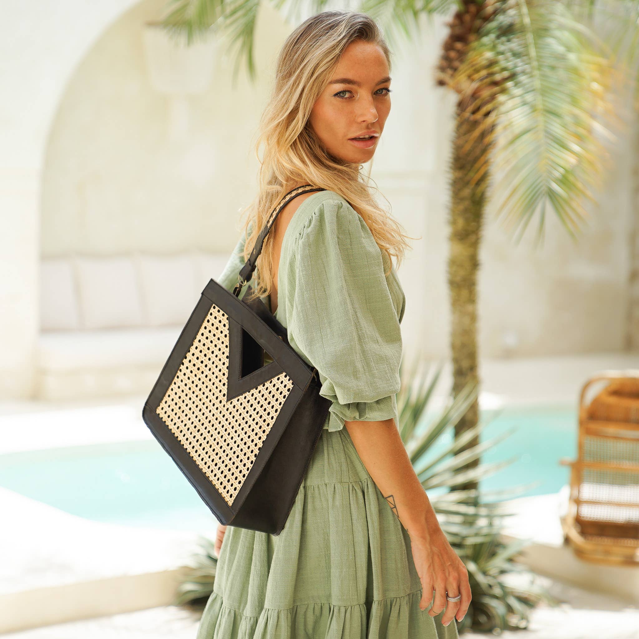 "Upgrade your fashion game with our latest addition - the perfect night out clutch! Crafted from the finest rattan cane webbing material found in Indonesia and accented genuine leather trim for a touch of vintage charm, this compact clutch is the epitome of unique style. From casual dinner dates to glamorous parties, this versatile clutch will elevate any outfit with its effortless elegance. So why settle for ordinary when you can stand out with our one-of-a-kind accessory Dimensions 29 x 15 x 6 Cm