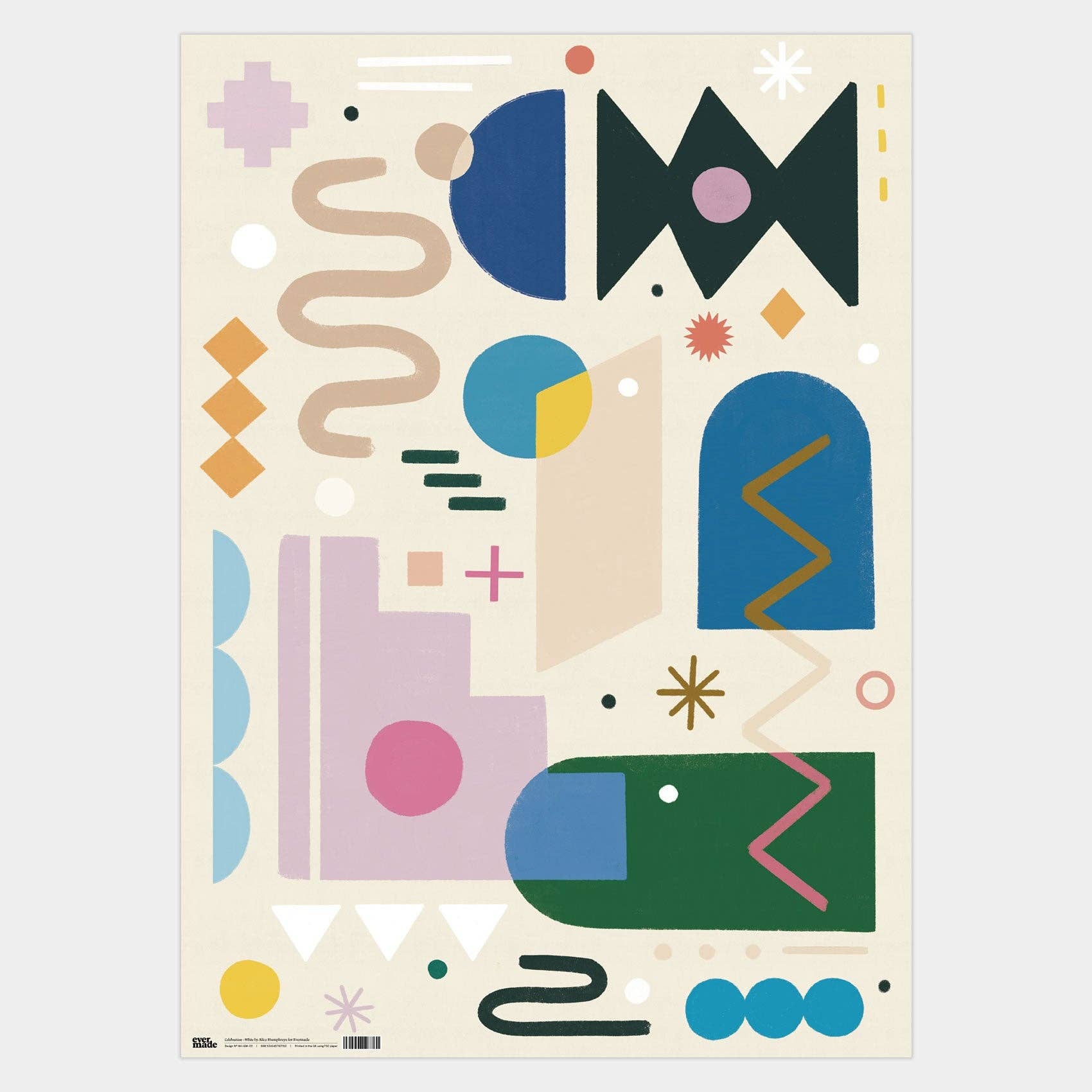 Single sheets of gift wrap. Designed by artist Alice Humphreys. Made in the UK. FSC certifed 100gsm matt gift wrap sheet. 50cm x 70cm sheets.
