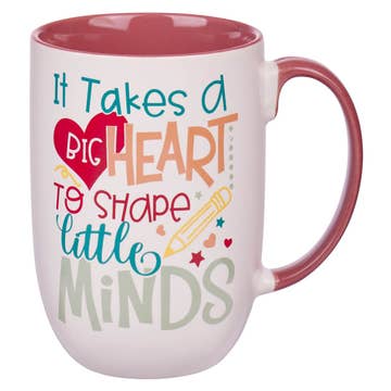 Show your favorite teacher some love with the Big Heart White and Pink Ceramic Coffee Mug. This adorable mug is a tiny token of your gratitude, reminding her of how her dedication, teaching passion, and endless patience shape young minds every day. Plus, it's the perfect companion for those much-needed "teacher time-outs." Every sip from this cup will let her know her hard work never goes unnoticed. Cheers to the best teacher ever! Colorful text with school-themed accents, White mug, Colorful text, It takes a big heart to shape little minds, Glossy pink glazed interior, Pink handle, Ceramic mug, Hand-wash recommended, Packaged in a tuck-top Kraft cardboard box, Packaging dimensions: 5.1" x 4.8" x 3.7" (130 x 122 x 89mm), Capacity 15 fl. oz. (444ml)