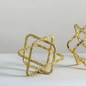 Geometric Gold Starburst Sculpture - Set of 2
