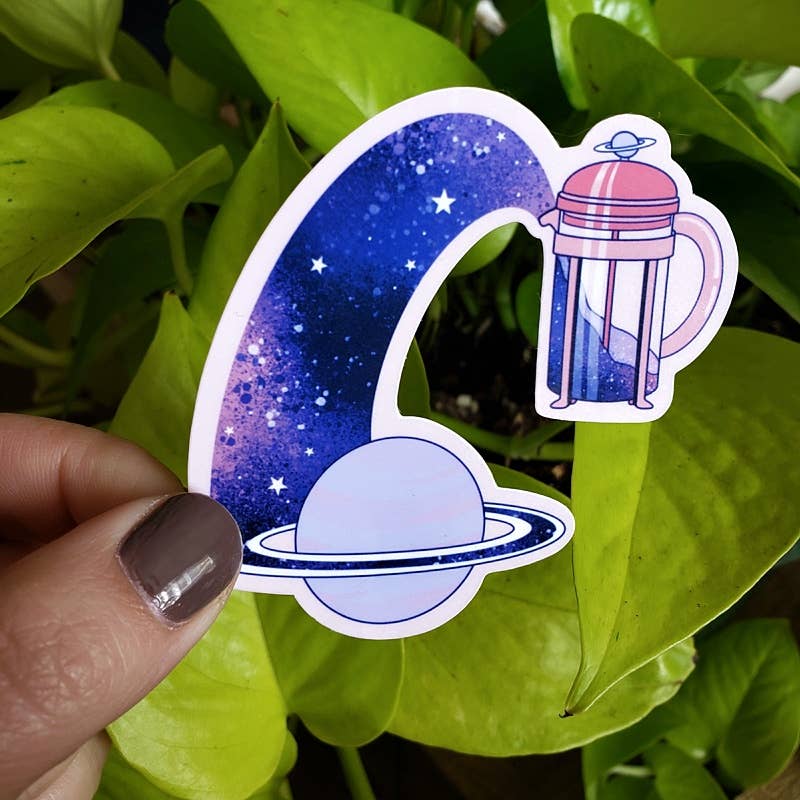 Astronaut With Solar System Coffee Sticker - 3"