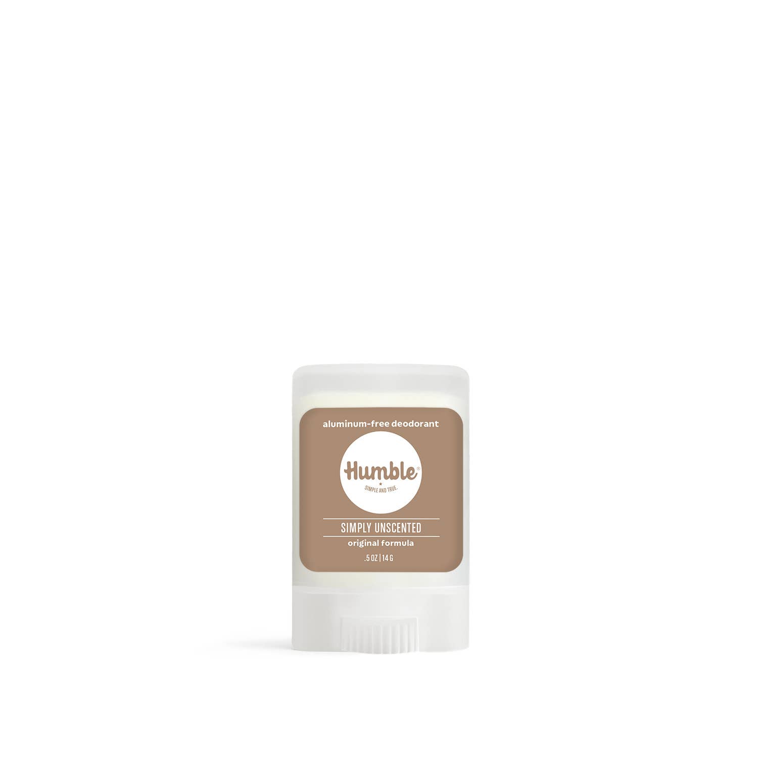 Scent Note: No Fragrance, No Scent Product Description: Made with simple, highly effective ingredients (MCT oil, non-GMO corn starch, beeswax, baking soda and botanically-based scents). Humble Brands Deodorant is formulated to absorb and neutralize body odor. Humble Brands Deodorant has no aluminum, alcohol, dyes, parabens, sulfates or artificial fragrance. Certified Cruelty-Free by Leaping Bunny and a 1% for the Planet product that gives back with every purchase. Full size deodorant containers are made from 75% post consumer recycled plastic. Size: .5 oz / 14g