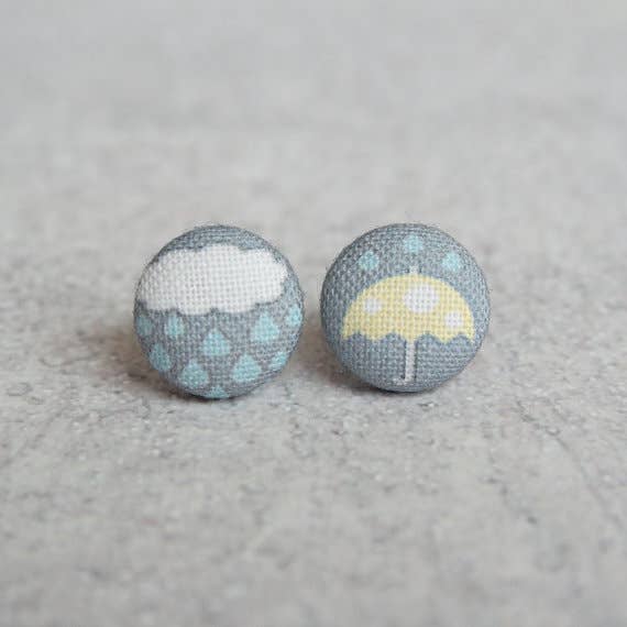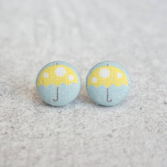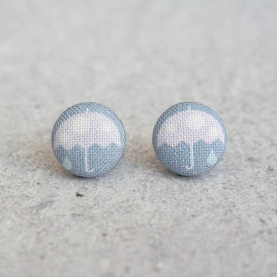 Blue Skies Fabric Button Earrings