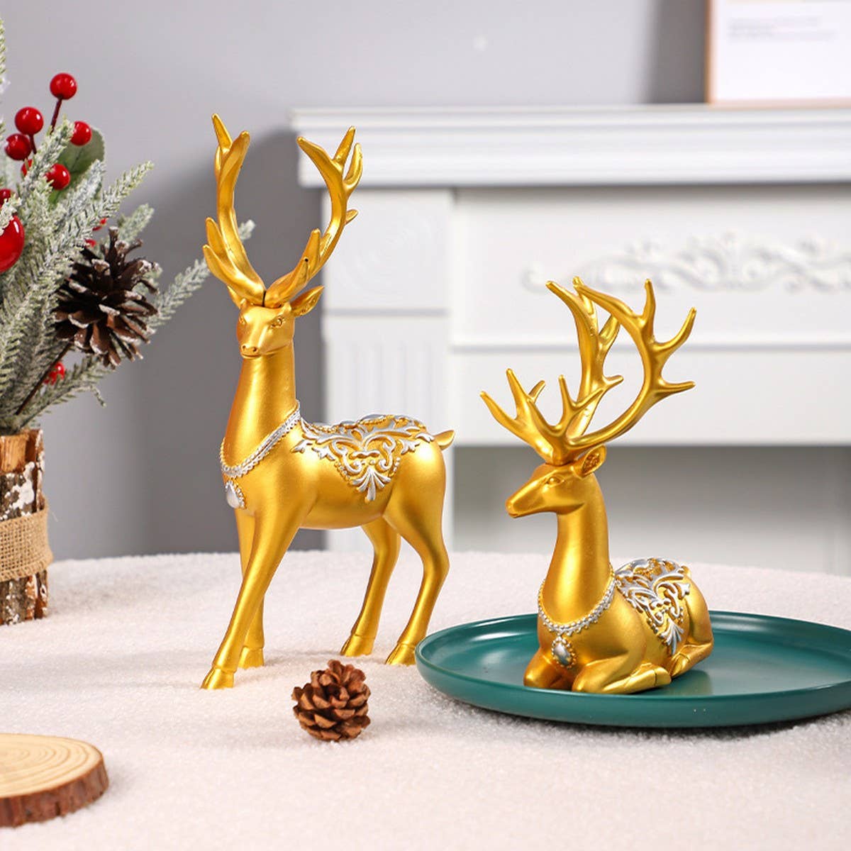 Artistry in luxury pewter, our Reindeer Sleigh Centerpiece features a highly detailed pewter reindeer figural pulling an old fashioned, branch runner sleigh to fill with flowers, candies, nuts, any holiday delight you desire. The sleigh features mezzo-rilievo decoration of boughs, pine cones and holly bouquets. A holiday decoration that will become a family heirloom to treasure through the years, this piece adds subtle élan to your holiday home décor. Size: 7"T x 17"L x 4 1/2"W Care: Hand wash in warm water, use mild non-acidic soap. Rinse, dry completely.
