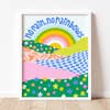 Digitally printed on 230 gsm acid free/archival paper with a matte finish and packaged with a chipboard backer; frame not included.
