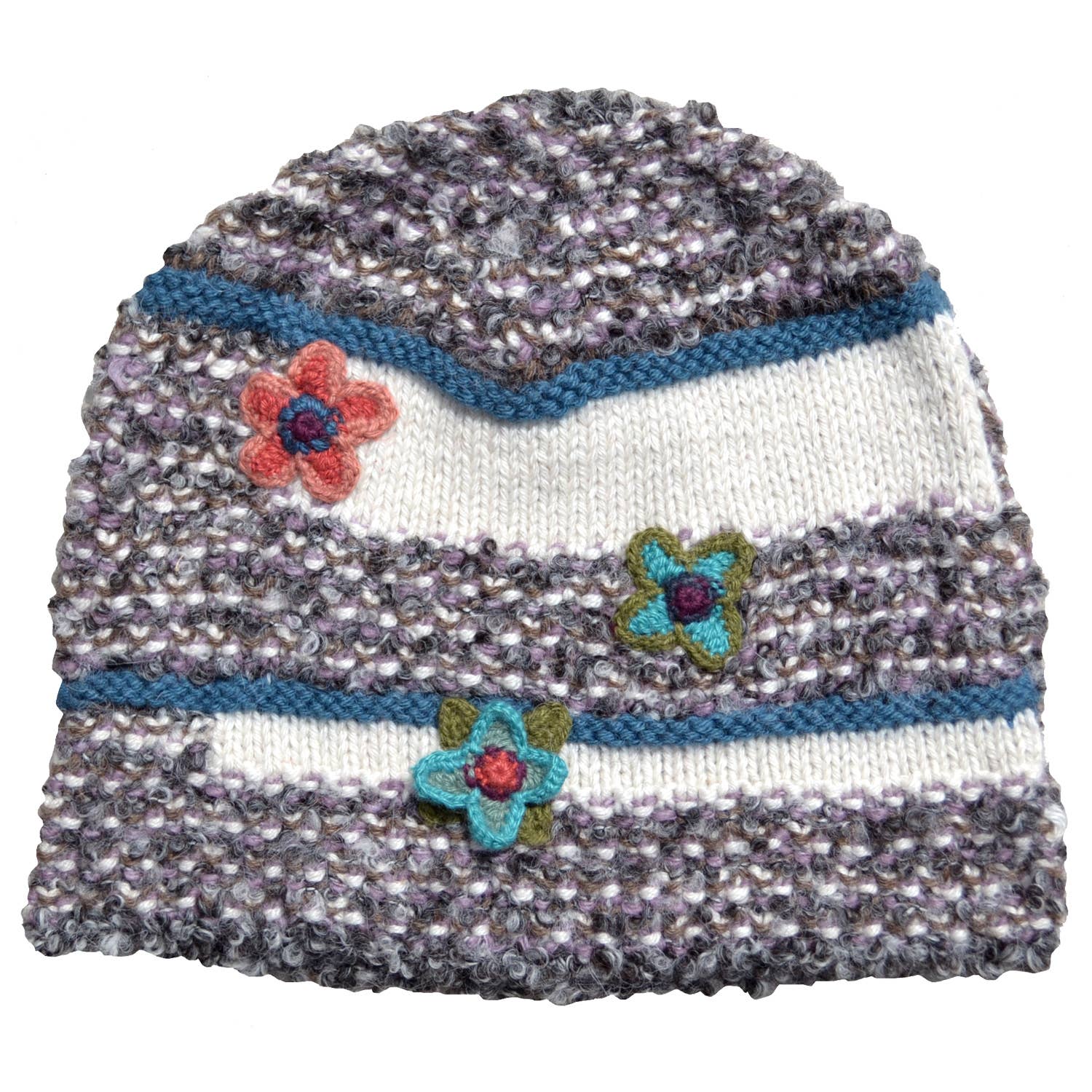 JCH903310 Purple-Blue Hand-Crocheted Floral Beanie
