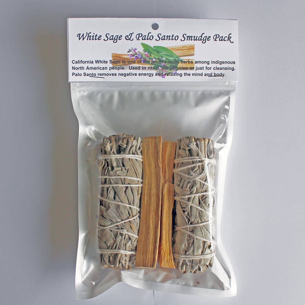 Everything you need to get smudging except the lighter! Organic Smudge Stick, Palo Santo, Selenite, Abalone Shell, Instructions & Prayer Card.