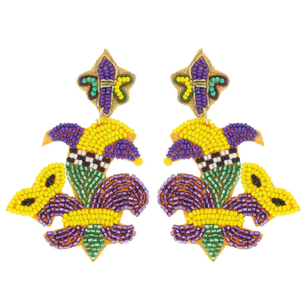 These are our gorgeous beaded GEAUX earrings! These are so fun and perfect for game days! Find more in our purple and gold collections!
