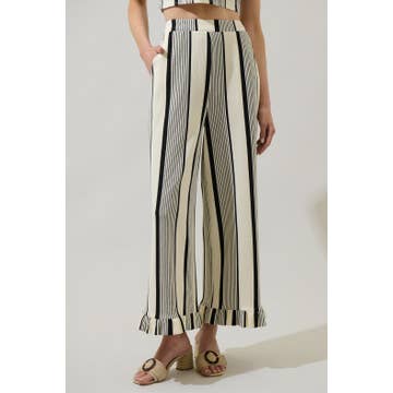 Made in China Aesthetic: Bohemian and Casual Care Instructions: Hand wash Fabric: 56% Polyester, 19% Cotton, 25% Viscose Fit: Contemporary Occasion: Everyday and Resort / Vacation Pant Length: Floor Pant Style: Wide Leg Pattern: Striped Season: Spring/Summer Weight: 272.16 g (9.6 oz)