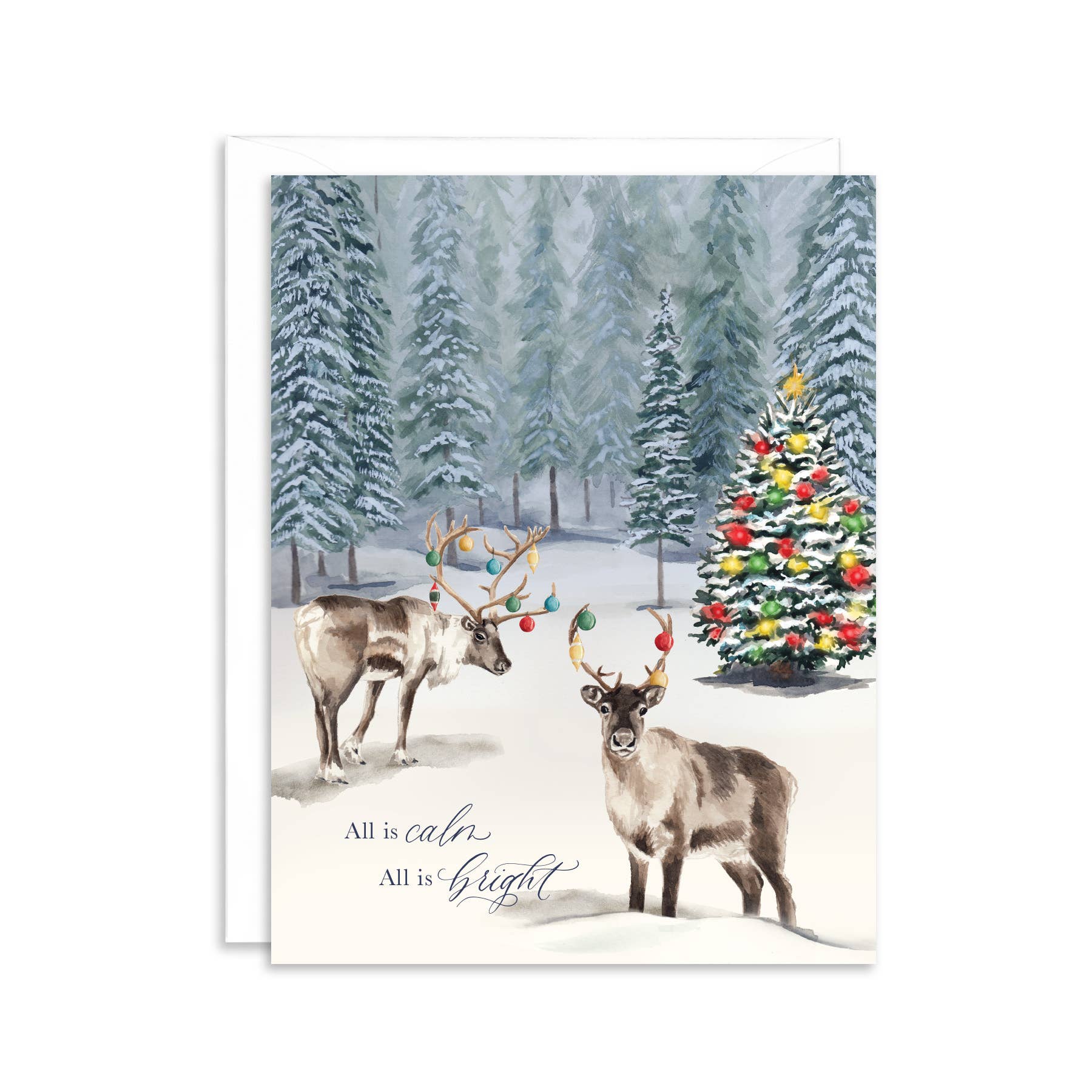 These two polar bears, braving through the blowing snow to get their Christmas Tree safely home, are truly storm troopers. Perfect for the Tree-bearer or the Star Wars geek in your life! - A2 size (4-1/4"x 5-1/2" when folded) - Blank inside - Offset printed in Toronto on natural-white, heavyweight, textured paper - Die-cut with rounded corners - Matching envelope included SKU: B-1488