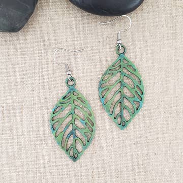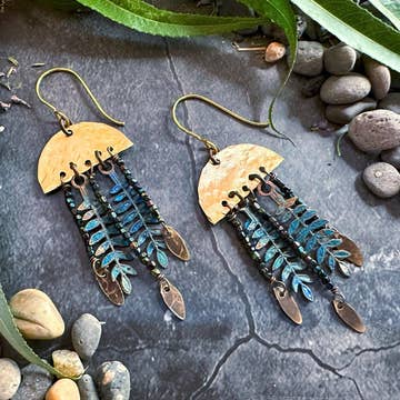 Gray fringe leather feather w/ patina arrowhead accent. Nickle/lead free. Please note that all pieces are handmade and slight variations may occur.