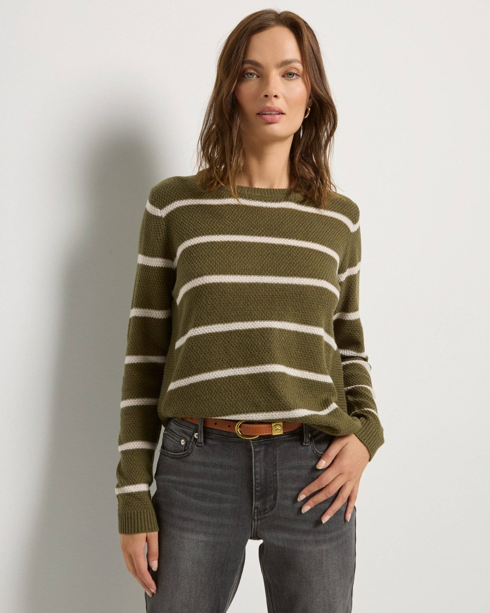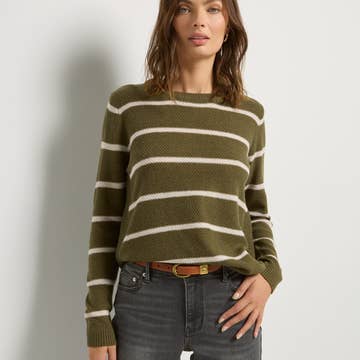 Wholesale Ladies Striped Pullover Round Neck Lantern Sleeves Knit Sweater
