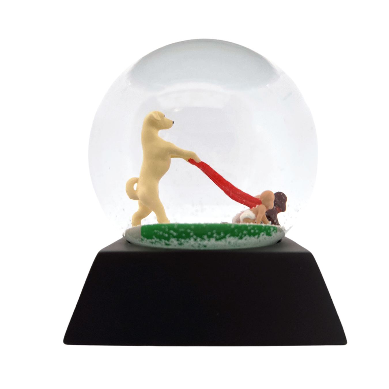 Based on the 1923 novel "Bambi, a Life in the Woods", this original scene imagines what would happen if the traumatized young deer grew up to avenge his mother's death against the hunter who caused it. Featuring hand-painted characters, the snow globe presents a snow-covered, wintry scene with the now-adult Bambi facing off against the hunter. Packed in a chic black gift box.
